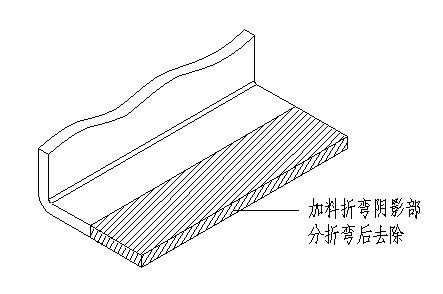 5.L折的特殊加工:<L<V/2>采用加料折弯,折弯后把多余料去除(二次加工)如下图所示: