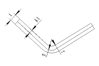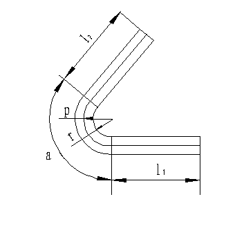 当r>0.5t 时,弯曲件变形时的厚度基本不变,可以按中性 层展开长度计算弯曲件长度。弯曲件长度包括直线部分和圆弧部