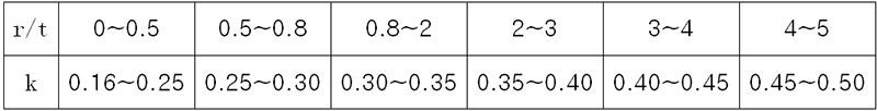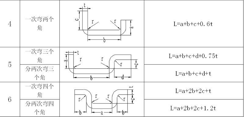 当r<0.5t时,弯曲件变形时的厚度会变薄,这使得弯曲件的长度发生变化,此时计算弯曲件的展开长度,可以按表4-2中的计算公式进行计算。